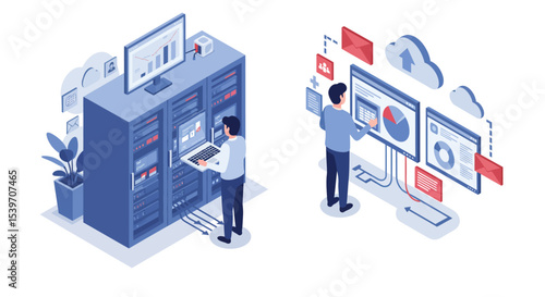 Data management and cloud computing concept illustration for technology solutions vector illustration