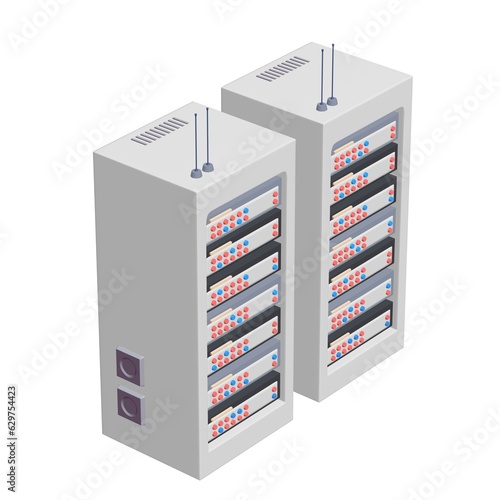 Data network server in cabinet. Diagnostic test in computer room technology communication computers and device concept. 3d render illustration.