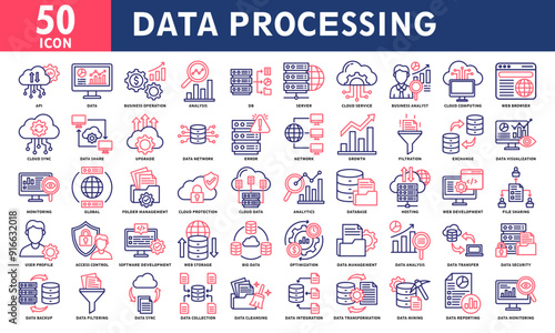 Data processing icon collection set. Simple line color vector.