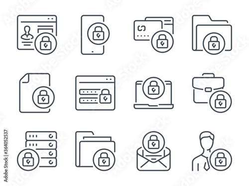 Data Protection line icons. Data Security icon set. Internet Security and Cybersecurity vector editable stroke icon collection.