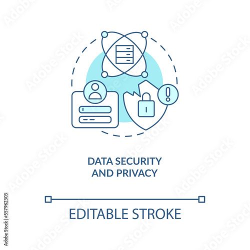 Data security and privacy turquoise concept icon. Information. Datalogy challenge abstract idea thin line illustration. Isolated outline drawing. Editable stroke. Arial, Myriad Pro-Bold fonts used