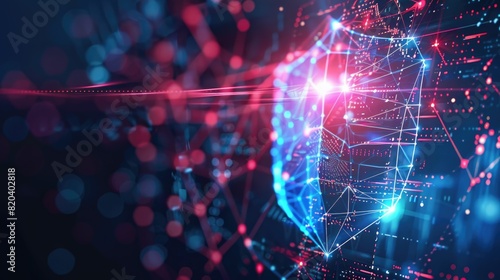 Data security concept, abstract shield protecting financial data