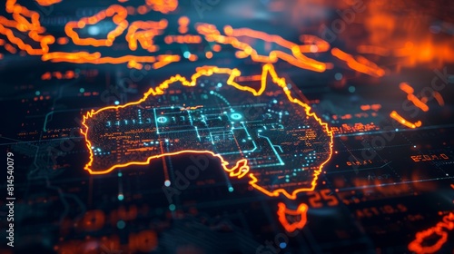 Data transfers and cyber technology, business exchange, information and telecommunications, digital map of Australia