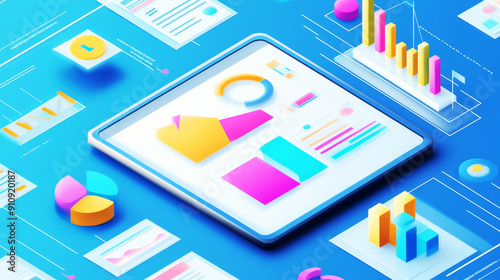 Data Visualization Delight: An isometric wonderland of vibrant charts and graphs, showcasing the power of data analysis in a playful and engaging way.