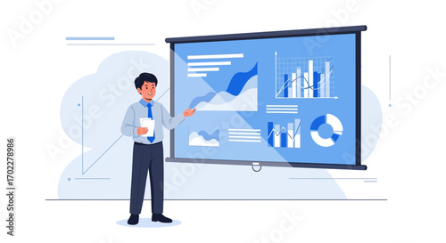 Data Visualization Presentation: Business Professional Explaining Complex Information Effectively