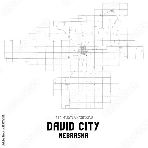 David City Nebraska. US street map with black and white lines.