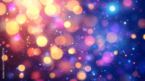 Dazzling Bokeh Lights: A vibrant and festive abstract background of bokeh lights in shades of pink, purple, yellow and blue. The shimmering orbs create a dreamy, celebratory, and magical atmosphere.