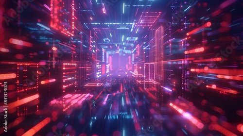 Dazzling Futuristic Tunnel of Pulsing Neon Lights and Digital Energy