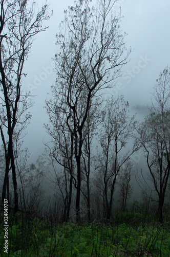dead trees in the clouds on the area around the Wawo muda volcano in Flores in Indonesia