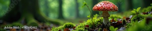Deadly skullcap in a coniferous forest environment, poisonous mushroom, deadly skullcap, fungi