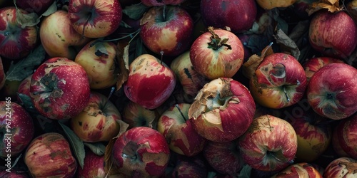Decay apples Dropped decayed apples Spoiled apples resembling discarded waste