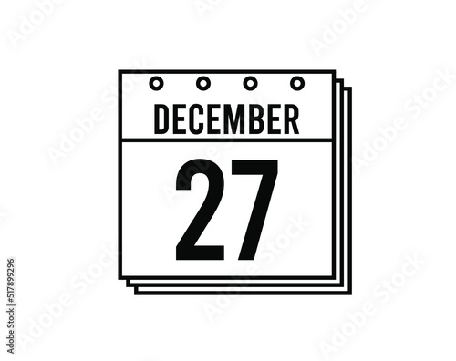 December 27 calendar. December month calendar black and white icon. Simple 3D vector.