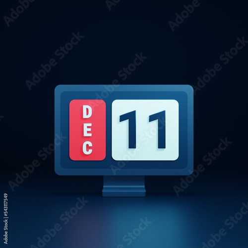 December Calendar Icon 3D Illustration with Desktop Monitor Date December 11
