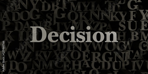 Decision - Stock image of 3D rendered metallic typeset headline illustration. Can be used for an online banner ad or a print postcard.