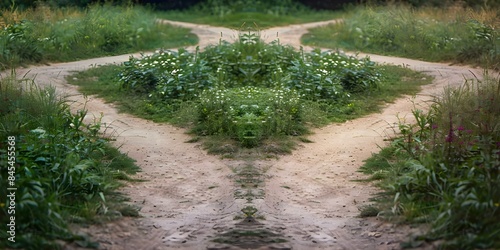 Decision-Making and Choice Symbolism of a Rural Crossroads with Two Dirt Paths. Concept Symbolism, Decision-making, Crossroads, Rural Setting, Duality