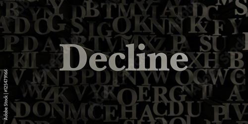 Decline - Stock image of 3D rendered metallic typeset headline illustration. Can be used for an online banner ad or a print postcard.