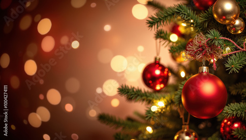 Decorated Christmas tree with sparkling ornaments and soft lights