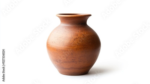 Decorative brown ceramic vase with a round shape isolated on a clean white background for artistic and home decor concepts