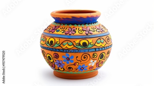 Decorative clay pot with Day of the Dead patterns and designs isolated on white background