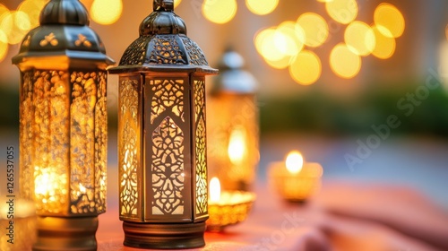 Decorative Lanterns Glowing with Soft Light in Evening Setting