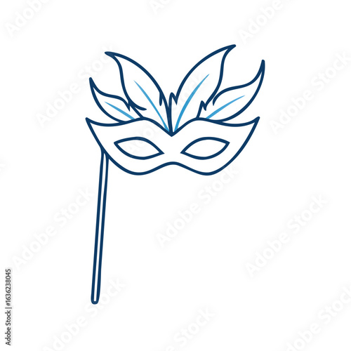 Decorative mask with feathers on a stick in minimalist design
