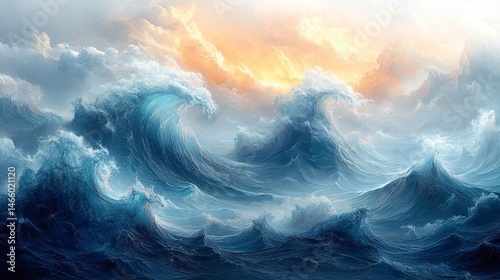 Decorative ocean wave texture with flowing water elements for textile or wallpaper