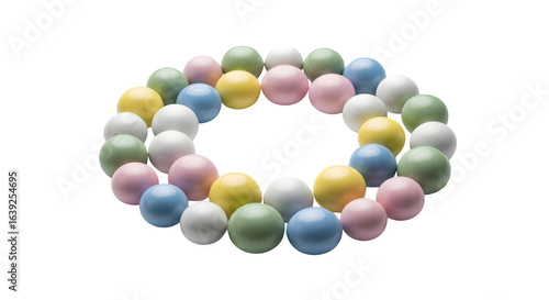 Decorative pastel stones arranged in zen circle, isolated on white background
