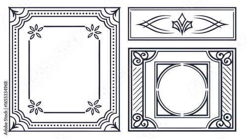 Decorative Vintage Frame and Label Borders Vector Set, Elegant Retro Outline Shapes for Invitations, Packaging, Certificates, and Design Templates