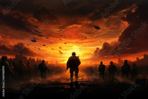 Dedicated Army during sunset. Ranger soldier training. Generate Ai