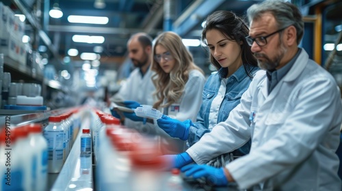 Dedicated Workers Performing Thorough Control Inspection on an Industrial Assembly Line to Ensure Product Precision and Efficiency