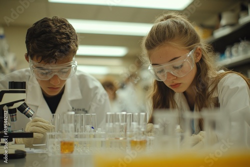 Dedicated young scientists conduct experiments in a modern research laboratory