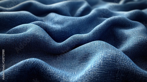 Deep Blue Denim Texture: A Close-Up Study of Draped Fabric