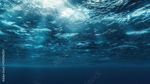 Deep Blue Ocean Water Surface with Sunlight and Gentle Waves