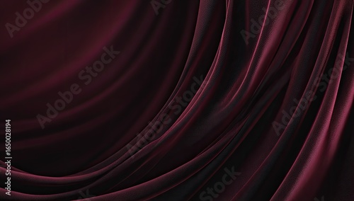Deep burgundy fabric drapes, flowing folds