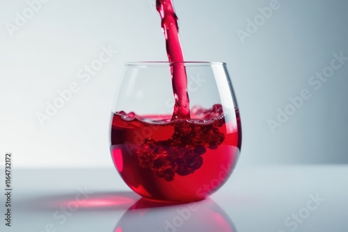 Deep crimson liquid flows into a glass vessel, flow, goblet