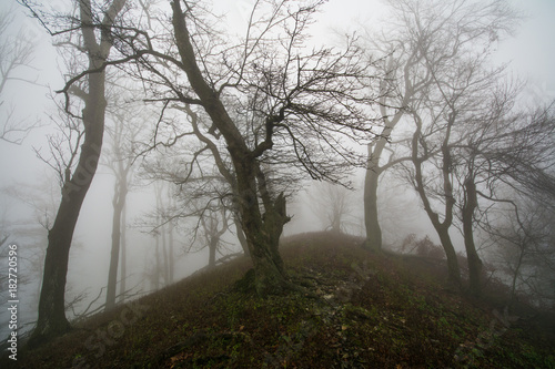 Deep dark forest in fog, Little Carpathian, Slovakia, Europe