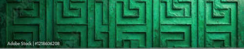 Deep green faded background, weathered ancient Greek key pattern , abstract, classic