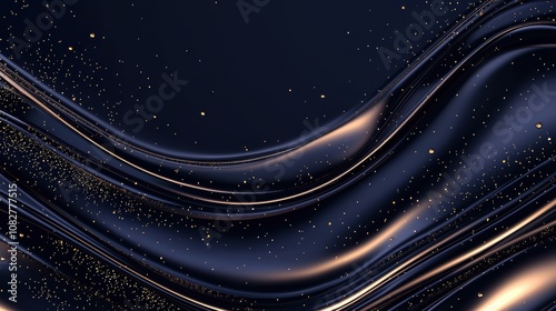 Deep navy fluid swirls accented with flecks of shimmering silver and gold