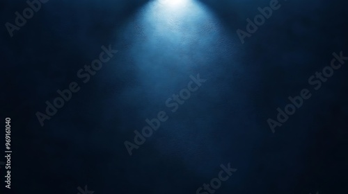 Deep ocean blue wall with a single spotlight casting a cool bluish glow from above at a wide angle, creating an inviting space for text.