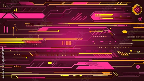 Deep purple backdrop enhanced with futuristic geometric patterns, creating a sense of modernity and structured complexity with bold textures and clean lines