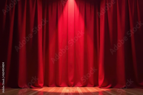 Deep red curtain backdrop, spotlight center stage, texture, red, spotlight