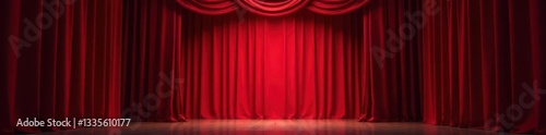Deep red stage curtain, classic arch entryway, curtain, interior, background