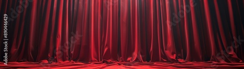 Deep red theatre curtains, dramatic spotlight effect, realistic studio setting, high detail and sharpness