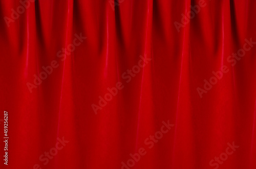 Deep red velvet curtain with smooth folds as elegance classic cinema background.