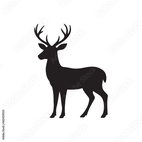 Deer and Deer Head Silhouette Vector Style With White Background.