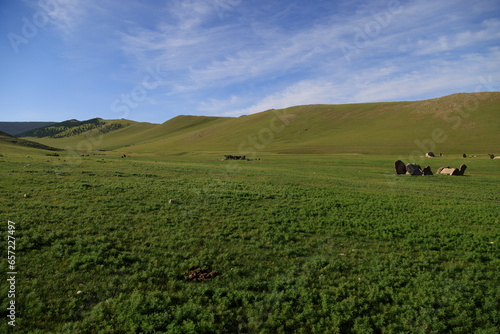 Deer stone monuments and square graves of Temeen Chuluu, Mongolia