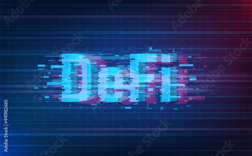 Defi crypto currency glitch style on system background.Futuristic concept.vector and illsutration