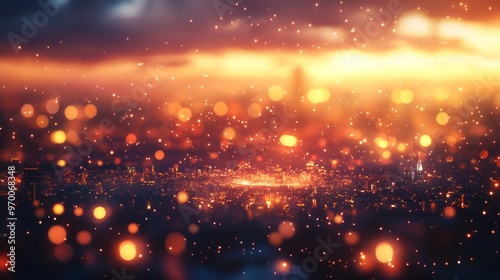 Defocused Cityscape with Warm Lights and Sparkling Dust