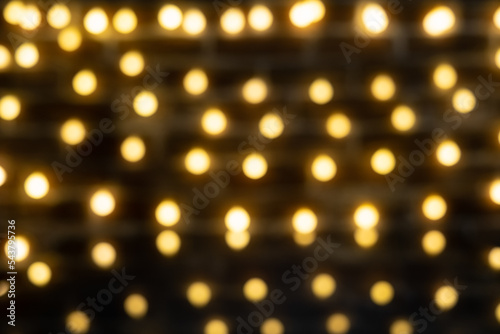 Defocused Lights Background. Golden unfocused light bulbs - Christmas party and new year concept