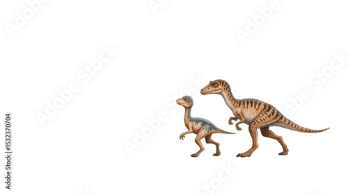 Deinonychus dinosaurs walking together, an adult and a baby, isolated on transparent background, perfect for educational or prehistoric themed projects